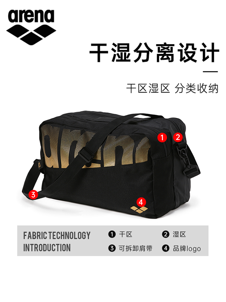 arena arena men and women double-layer dry and wet separation swimming bag equipped with large-capacity single-shoulder waterproof storage bag