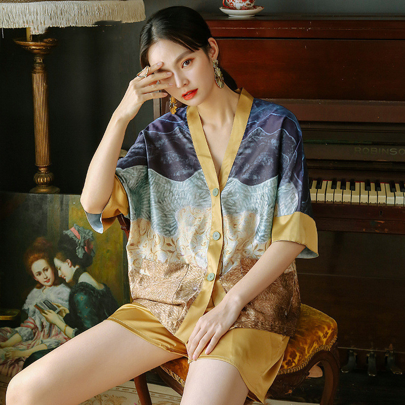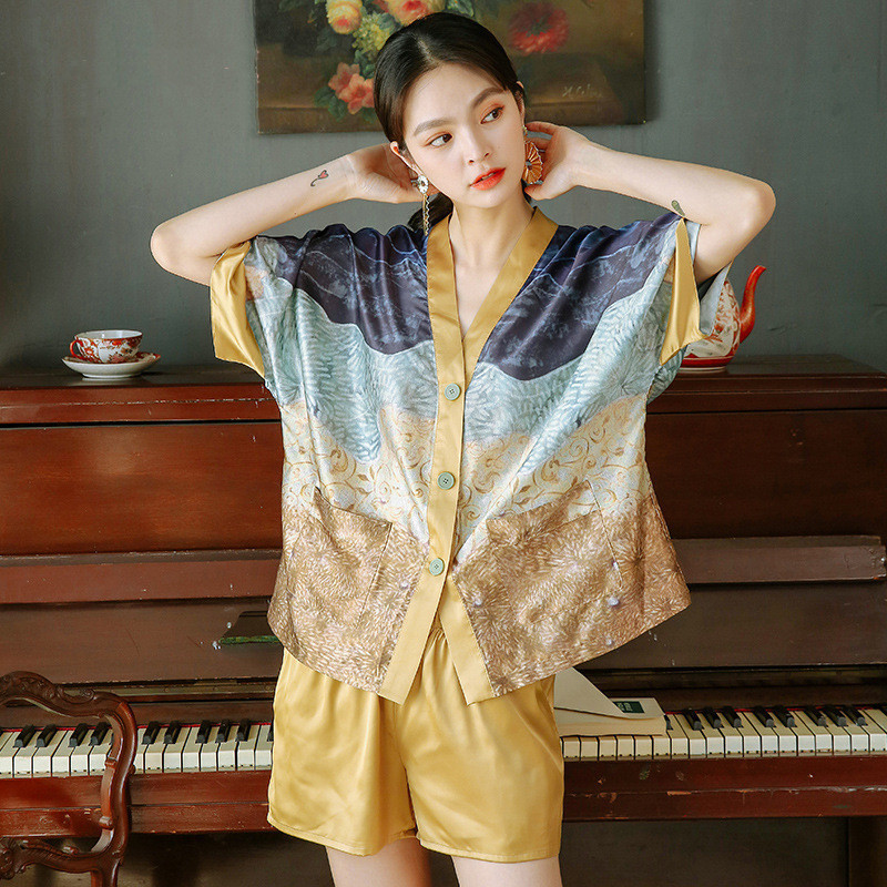 Representative Summer Pajamas Dailly Gtra ~ 2022 new pyjamas ladies brief ice silky print home clothes