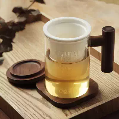 Original simple heat-resistant glass tea cup with lid tea separation office tea water cup can be customized