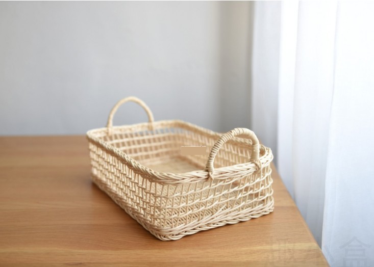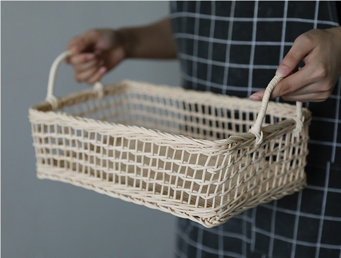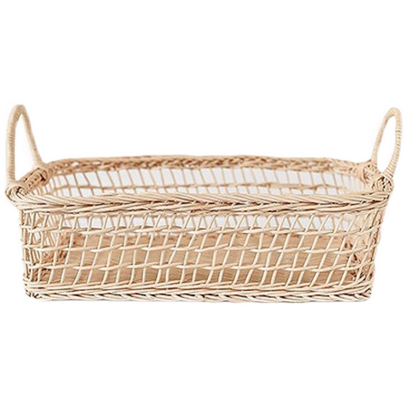 Nordic ins rattan choreography containing basket Indonesia white rattan woven hollowed-out handle basket Fruit bread containing basket
