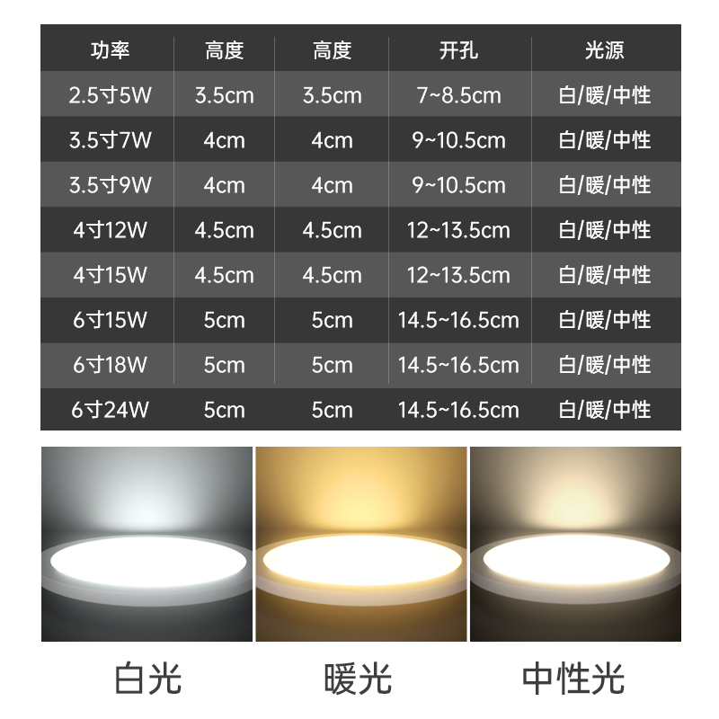 3 5 inch white Fumei 7W positive white light 10 loaded 3 5 inch white Fumei 7W warm yellow light 10 clothes 3 5 inch white Fumei 7W neutral light 10 fit 3 5 inch white Fumei 9W positive white light