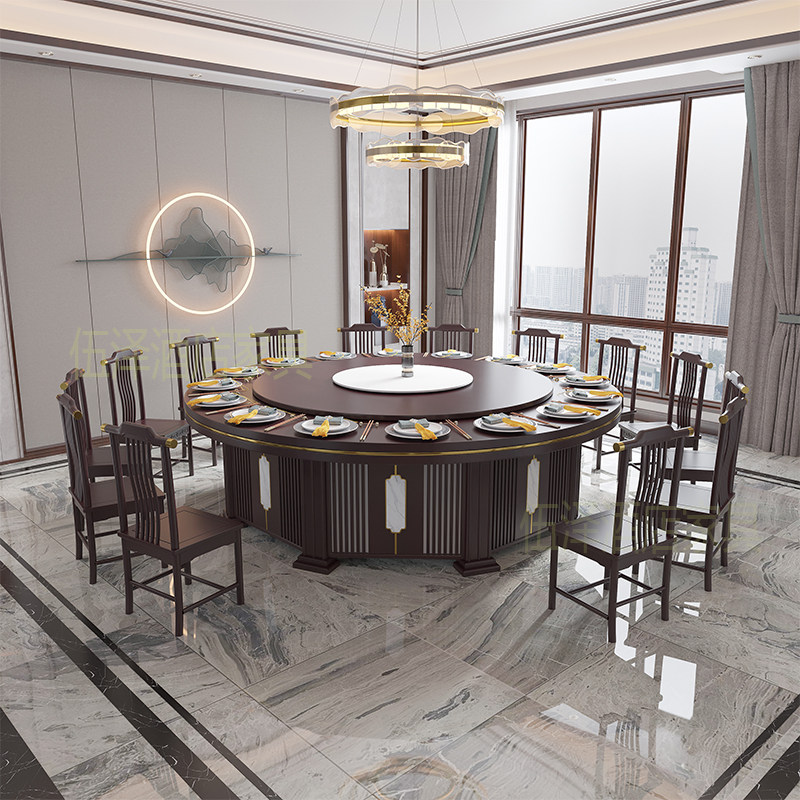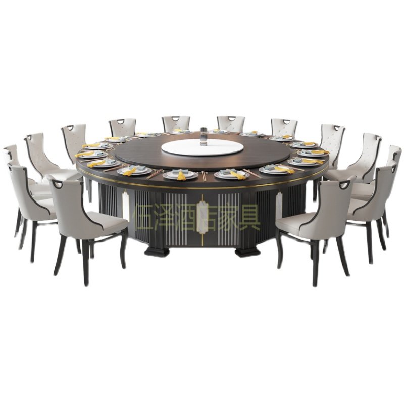 New Chinese style hotel electric dining table large round table clubhouse hotel private room 15 people 20 people round table with hot pot table solid wood
