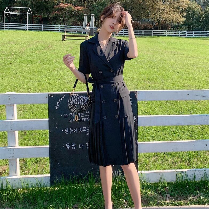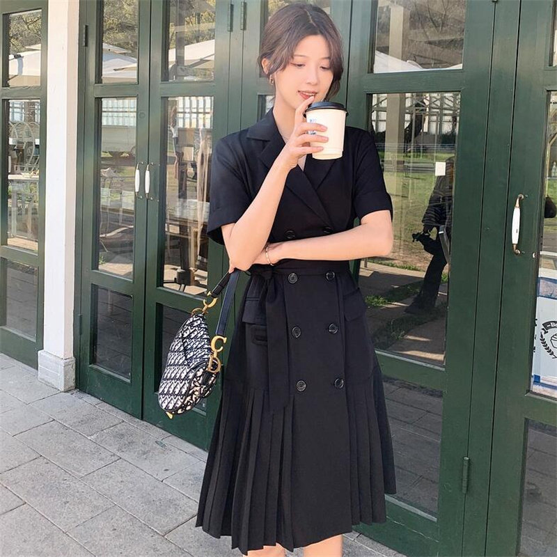 VOGCHAR French Hepburn style suit pleated black temperament dress goddess Fan Xia 2021 new