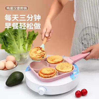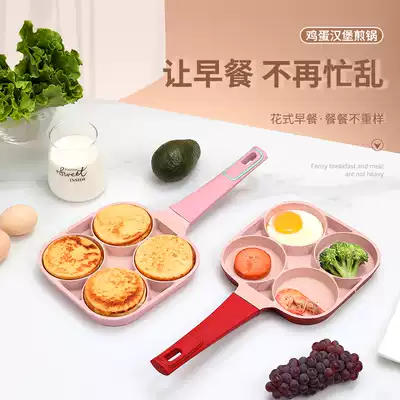 Four-Hole breakfast pot pink send silicone shovel sponge gas induction cooker Universal four-grid breakfast pot Red send silicone shovel sponge gas induction cooker Universal four-grid breakfast pot blue send silicone