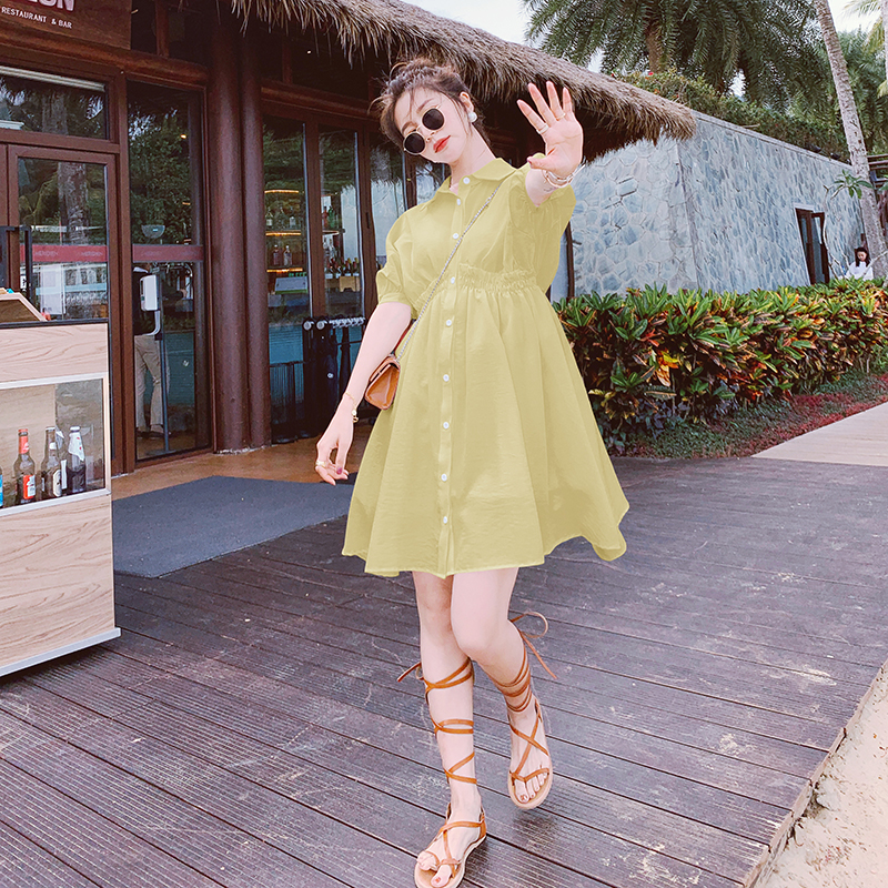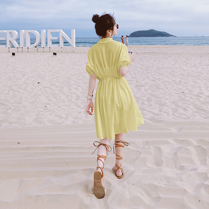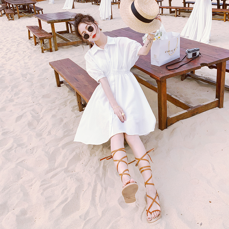 MAJE KARA Summer women's new small sub-style first love nepotism dress white cashew with slim shirt-style foreign dress