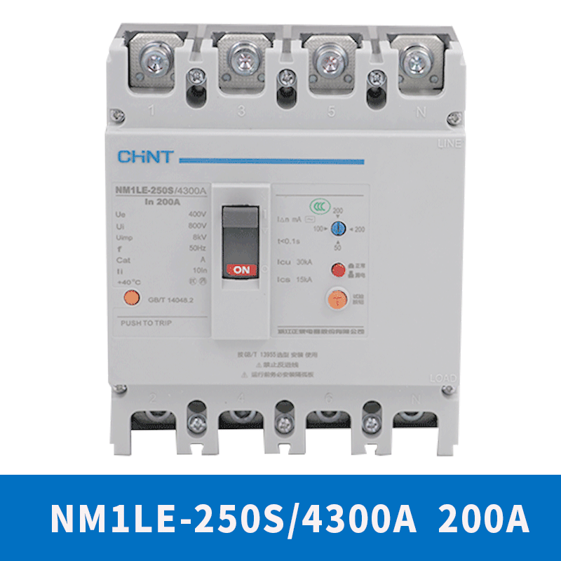 Positive Tai plastic shell leakage circuit breaker 630a breaker NM1LE three-phase four-wire leakage protection 250a earth leakage protector