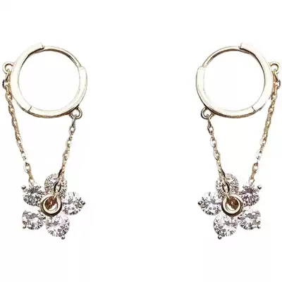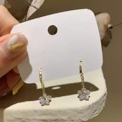 Korean chain flower earrings advanced sense light luxury temperament atmospheric goddess fan 2021 New Tide sterling silver earring
