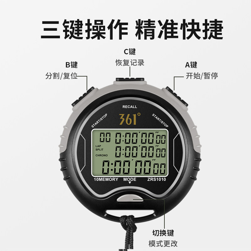361 Degrees Sec Watch Electronic Timer Professional Student Referee Athletics Running Table Sports Swimming Fitness Coaching Table