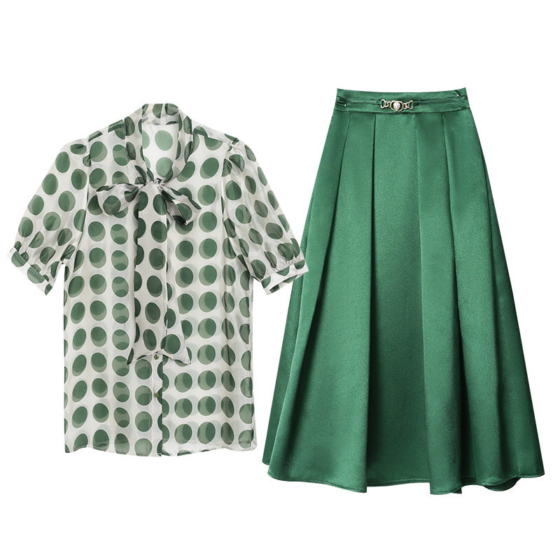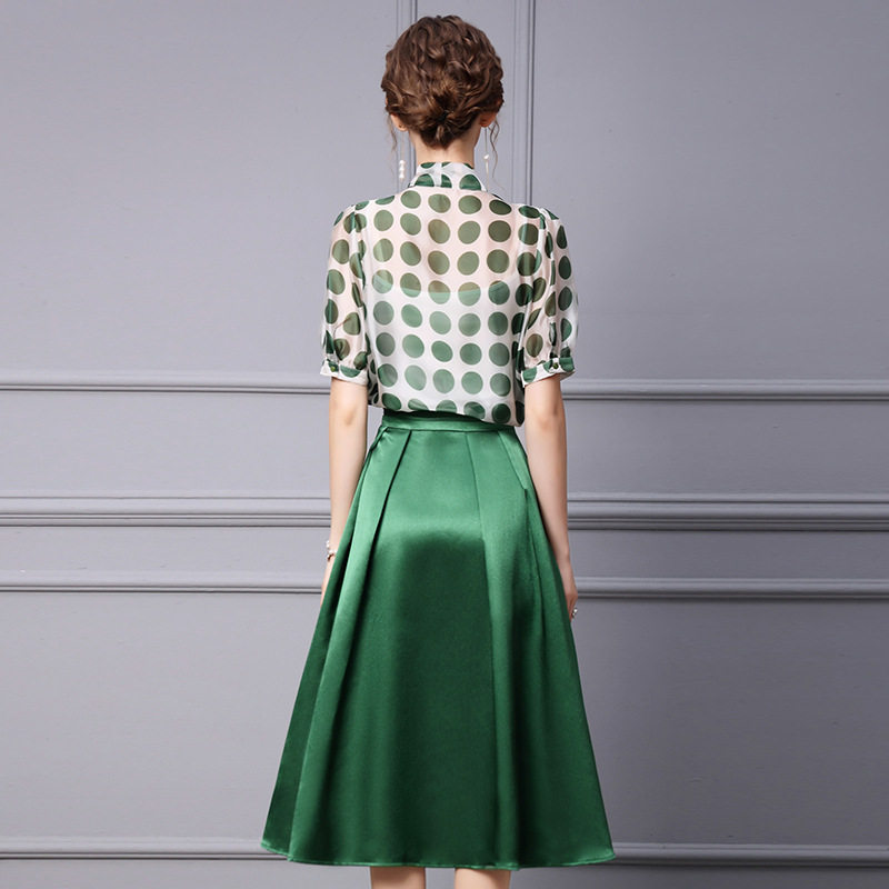 Green blouses polo dot half body dress in two sets