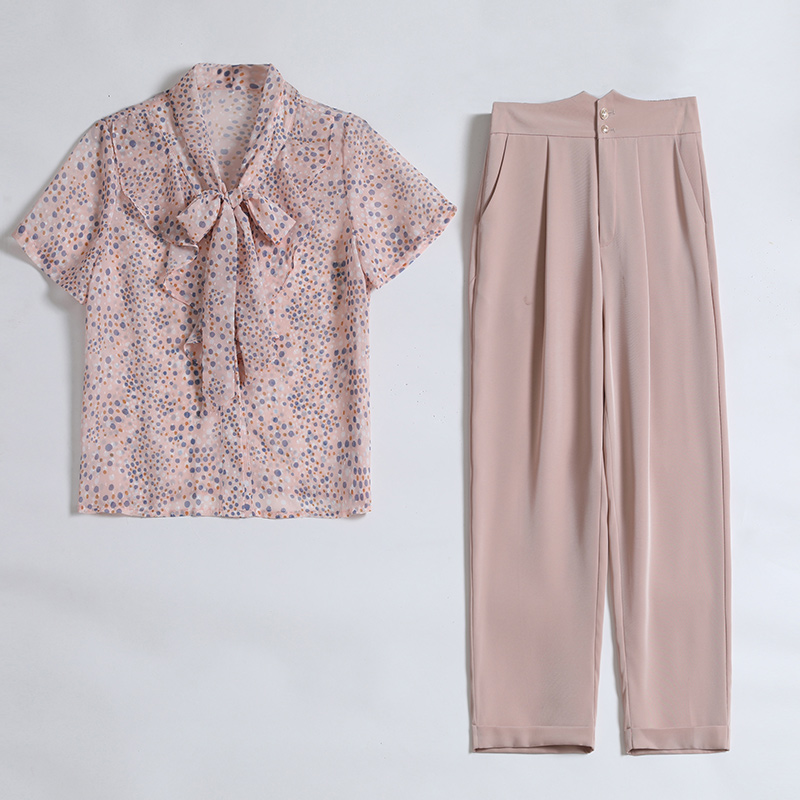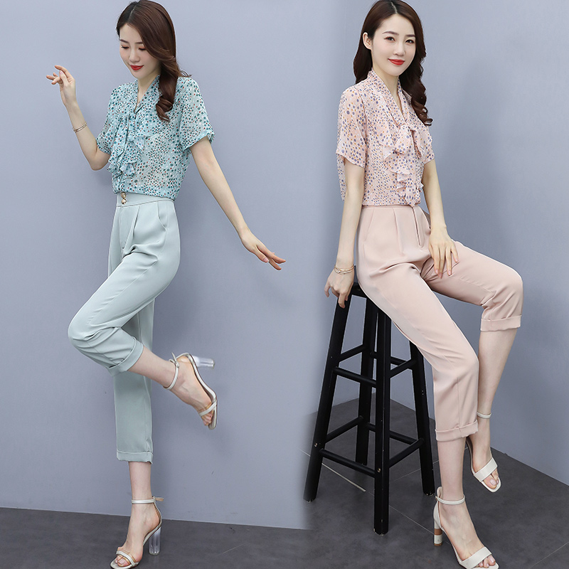 Fashion Suit Women's Summer New Temperament Foreign Air Small Snowspun Broken Flowers Shirt 90% Small Leggings Two Sets-Taobao