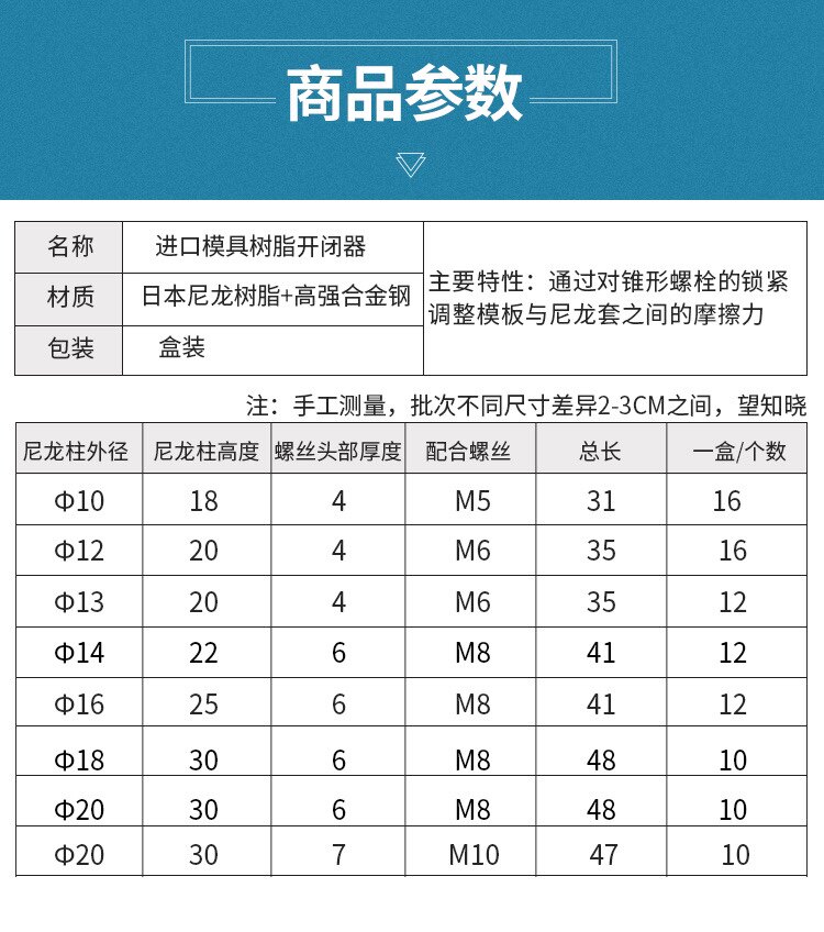 Imported high temperature mold open and closer resin resin Nylon pull hook lock button plug screw wear resistant