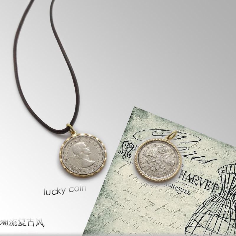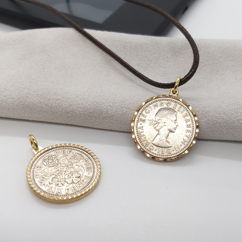 Original Custom Queen portrait Six pence coins lucky sixpence retro lucky coin pendant necklace small crowdsourced