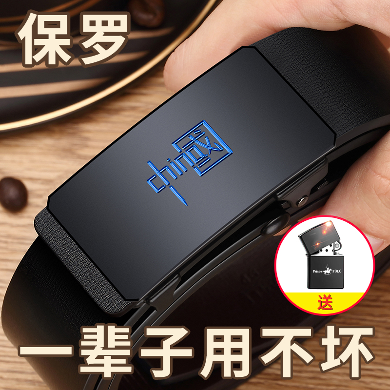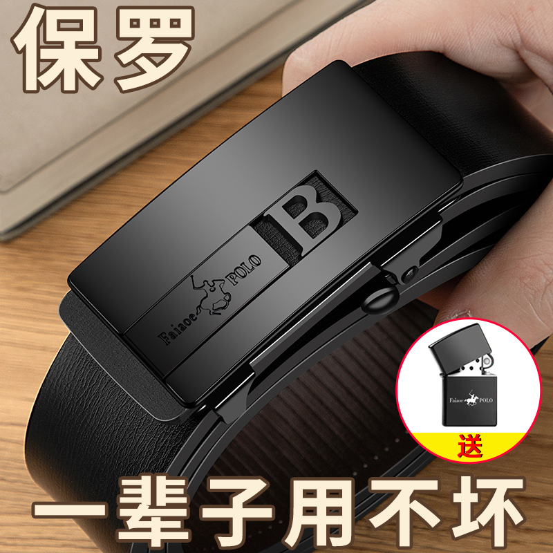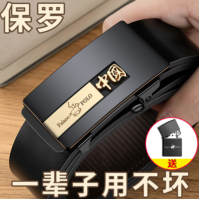 Rav Laurenma ball leather strap man genuine leather toothless automatic buckle pure cow leather men's belt green middle-aged trend business 100 lap pants