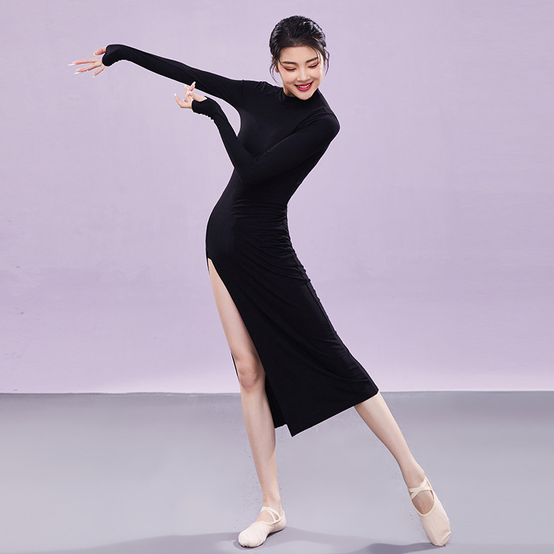 Cardamom Yiyuan classical dance basic sleeveless long skirt modern dance knitted strip dress temperament long-sleeved training clothes women
