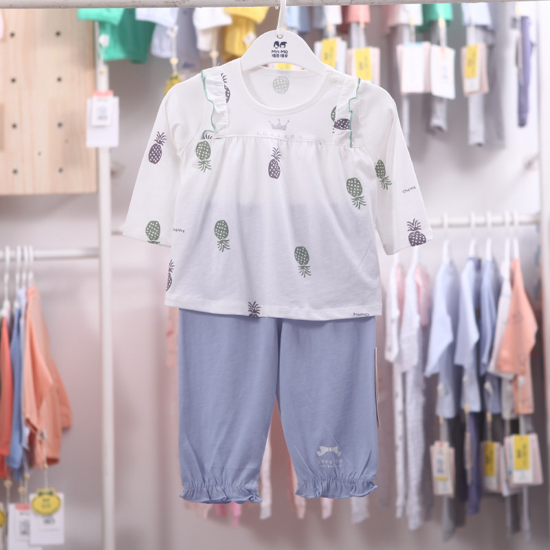 Mao Enmao Ai Summer Baby Air Conditioner Suit Male and Female Baby Two-piece Two-piece Ultra-thin Cotton Long Sleeve