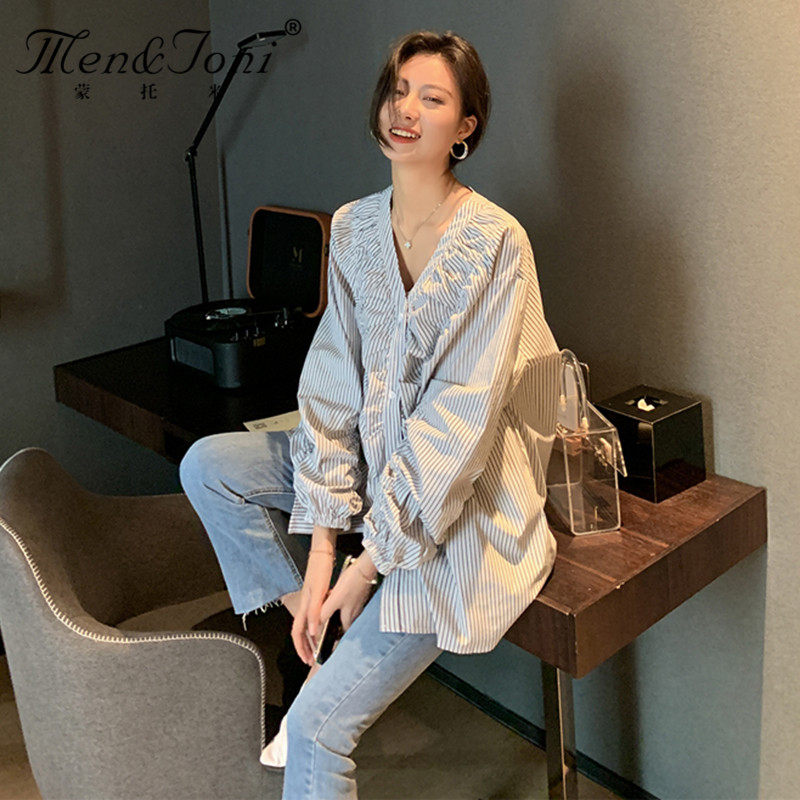 Men & Joni Monty Pregnant Woman Shirt Spring Dress Out of Breast-feeding Blouse With Slim Striped Shirt Tidal Hot Mom