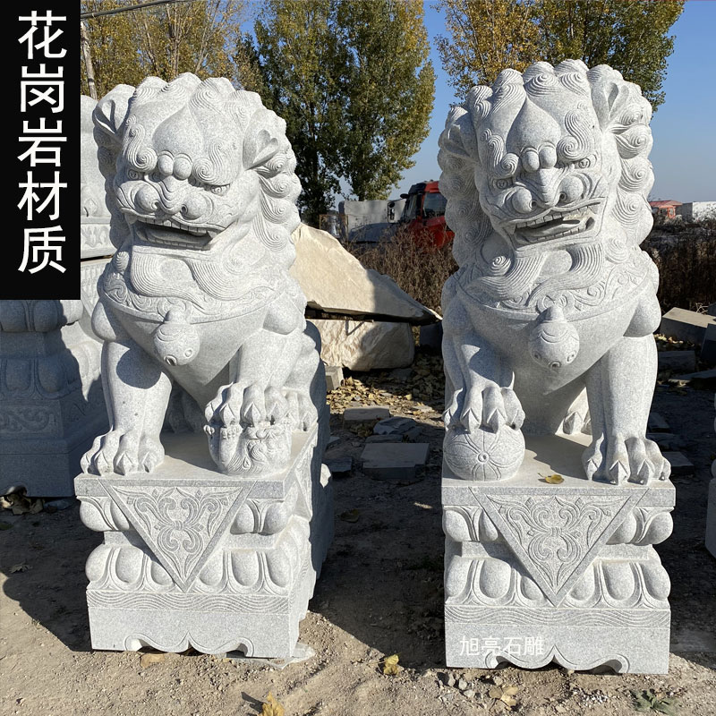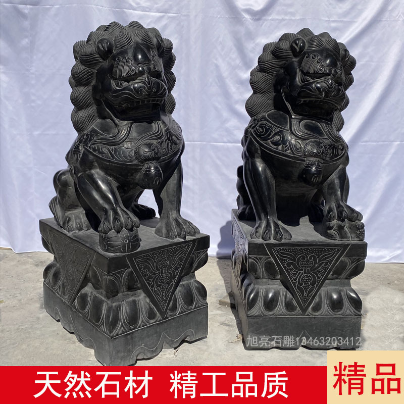 Stone Lions Pair of view Gate Qingshi Large hotel Home Villa Courtyard Chinese Fine Carving Large Doorway Stone Sculpture Pendulum