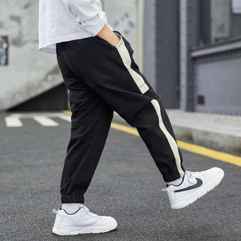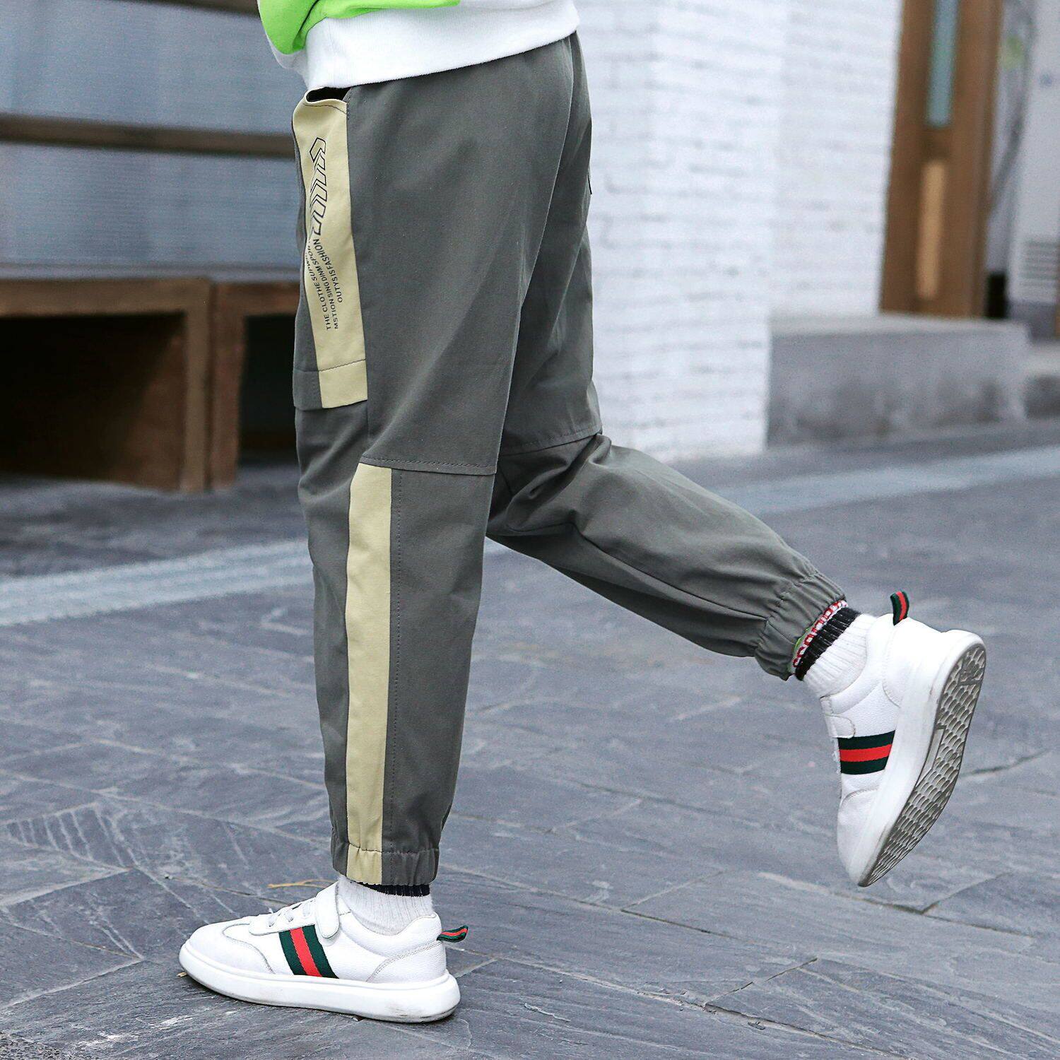 New autumn and winter children's casual pants trendy Korean version of medium and large children's trousers tooling boy plus velvet loose fashion pants