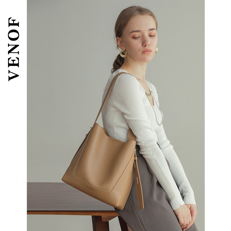 Vilofen Bucket Bag Lady 2023 New Skew Satchel about single shoulder Large capacity ultra-soft genuine leather commuter Totbag-Taobao