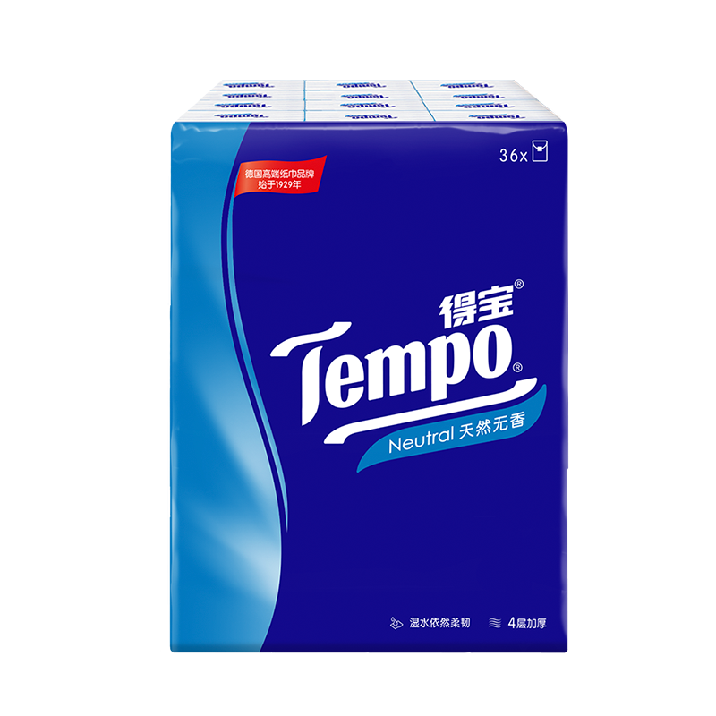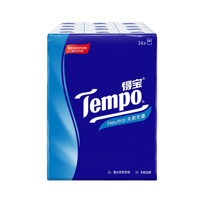 TempoTempo natural fragrance-free paper handkerchiefs 4 layers thickened 36 packs of facial tissue paper mini bag carry-on paper towels
