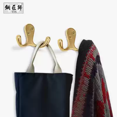 Solid wood door vintage Chinese pure copper hanging clothes custom hook coat hook solid copper coat hook rear hook Mingqing wall hook