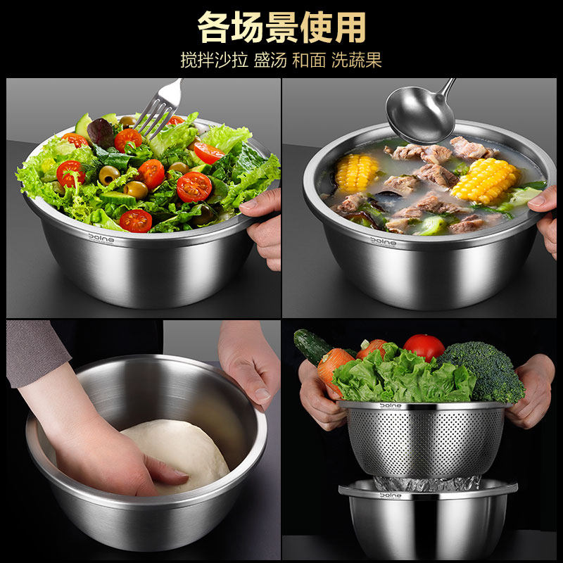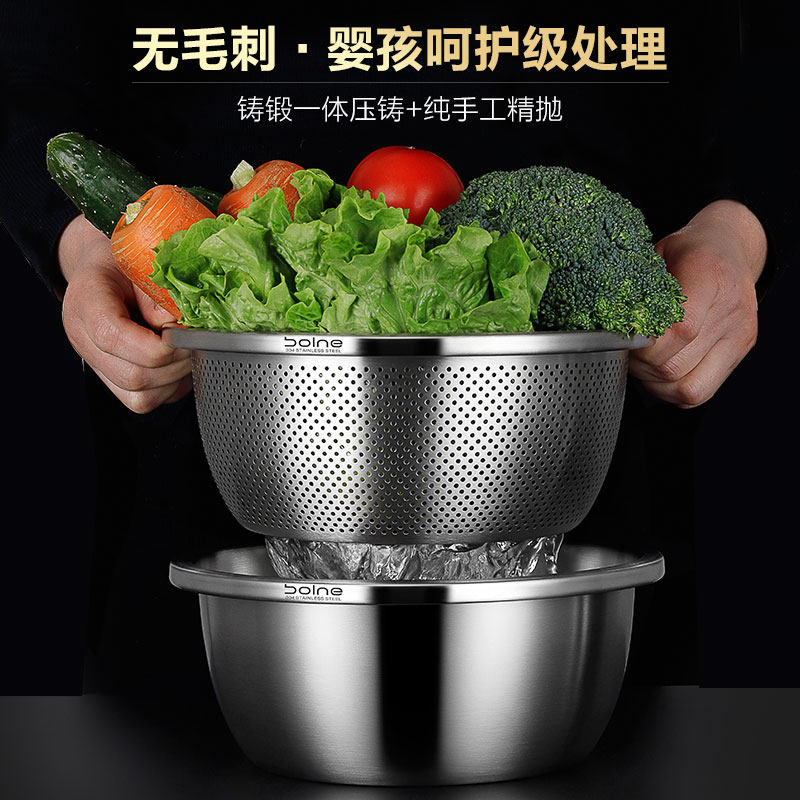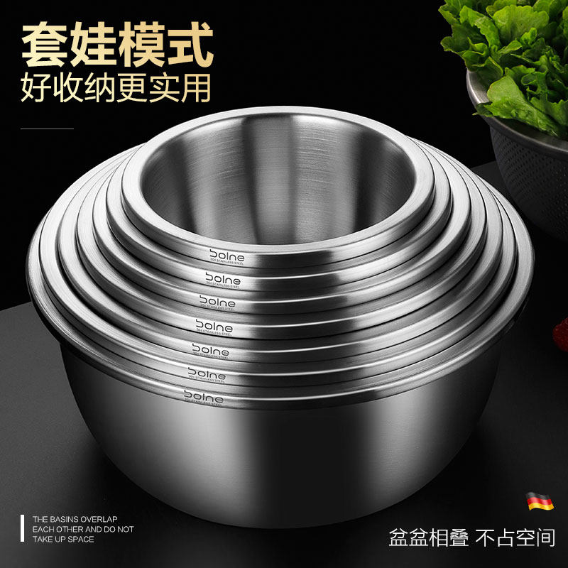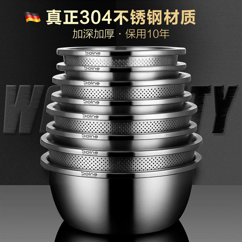 304 stainless steel basin food-grade egg-beating basin and noodle basin household kitchen draining water washing vegetable rice sieving basin set