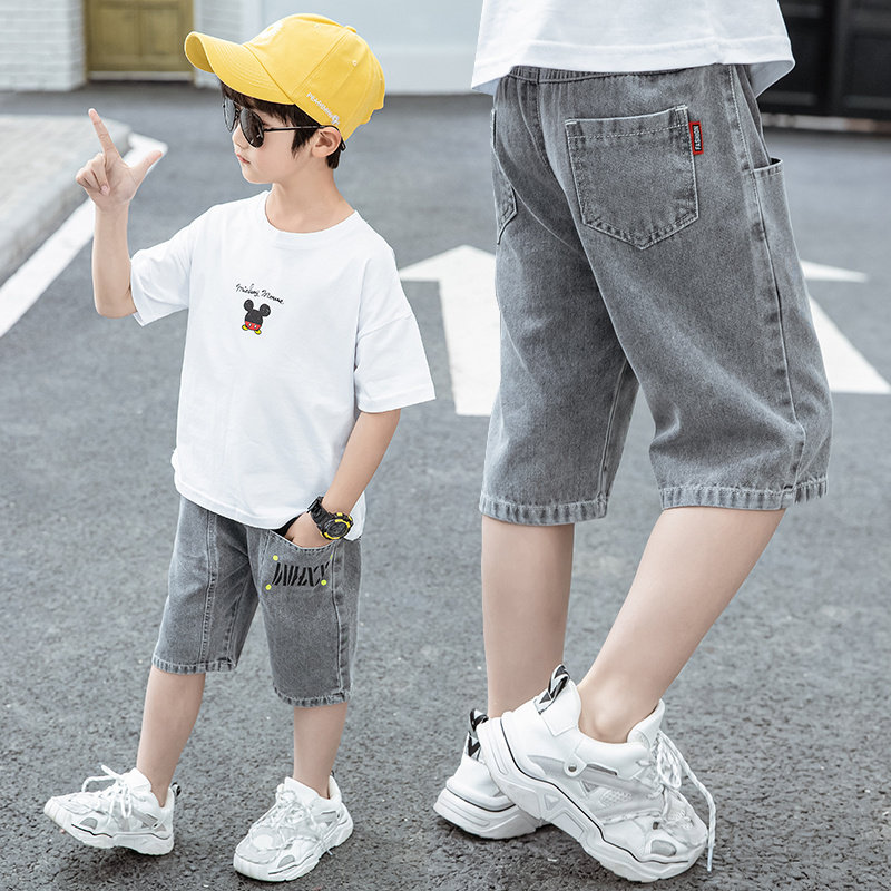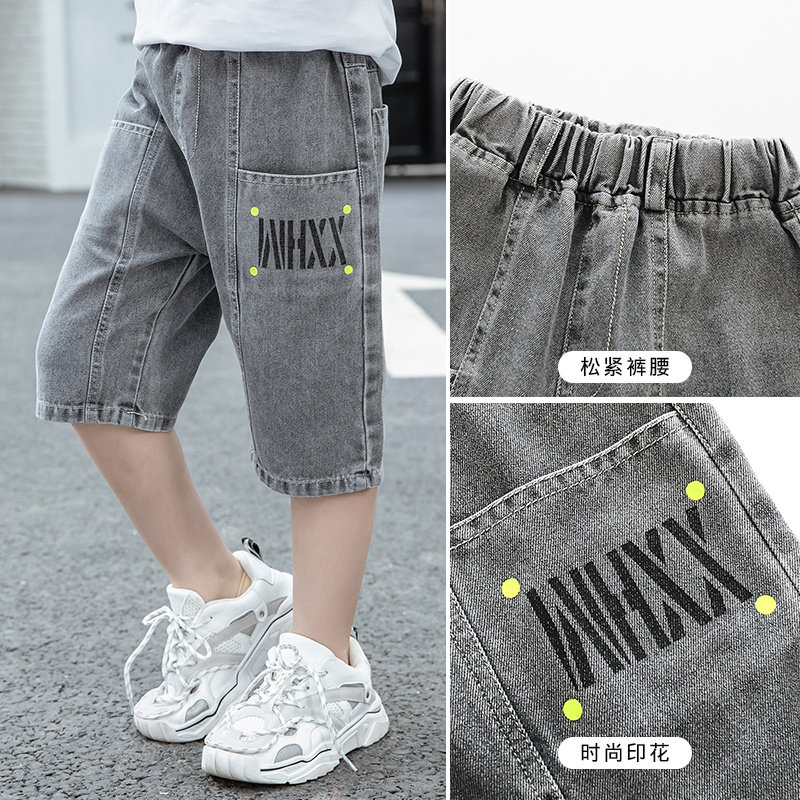 Boy Jeans Shorts Summer 2022 New Children's Seven Pants Slim Fit Pants Slim Fit Pants 50% Pants Tide Summer Dress