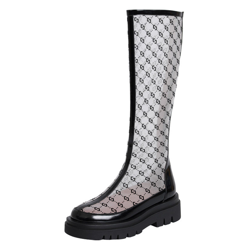 Leather thick-soled sandals hollow boots women's summer boots thin section mesh sandals increase height Roman high mesh boots