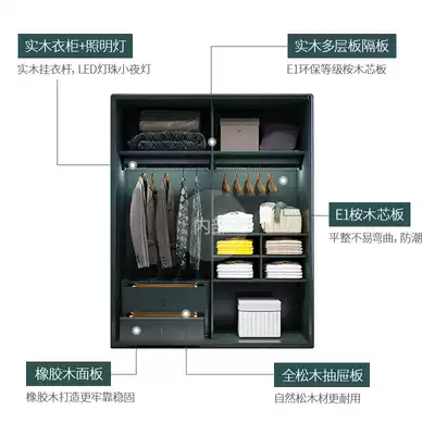 Modern simple light luxury sliding door home bedroom storage sliding door cabinet combination log environmental protection solid wood large wardrobe