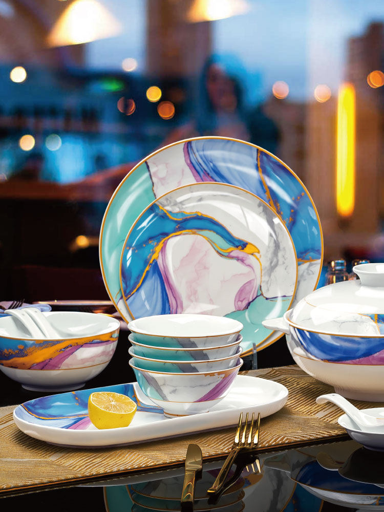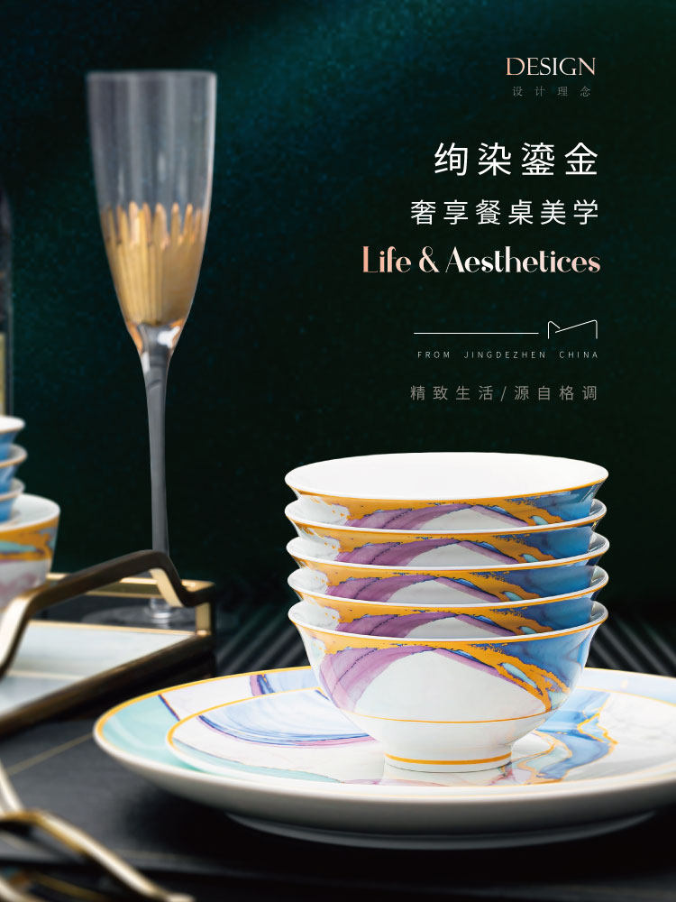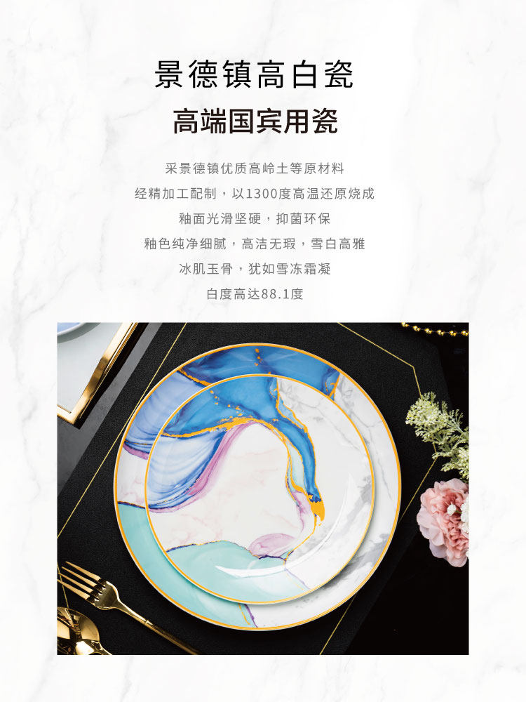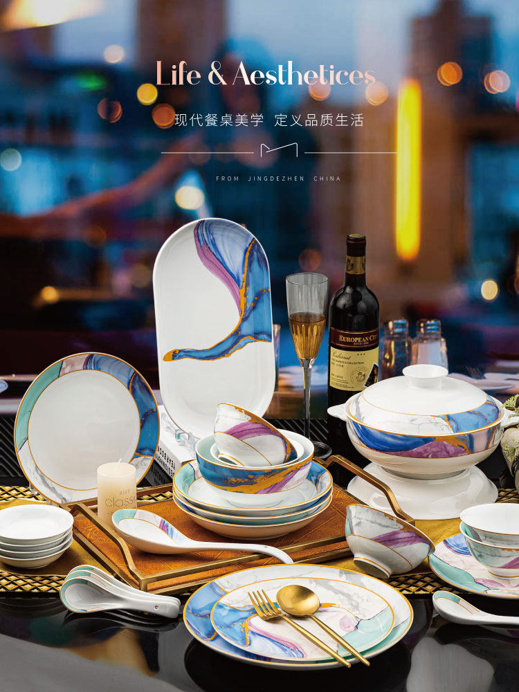 High-end light luxury Jingdezhen ceramic tableware set modern creative European-style dishes set bowls and dishes home gift box