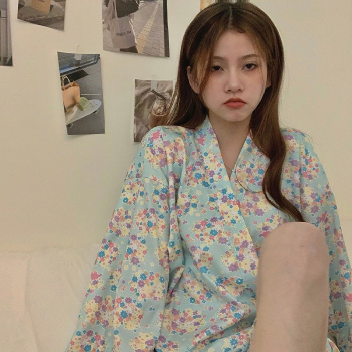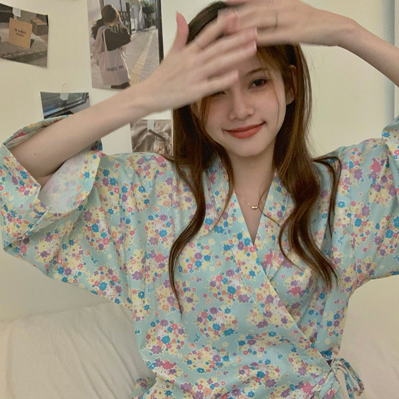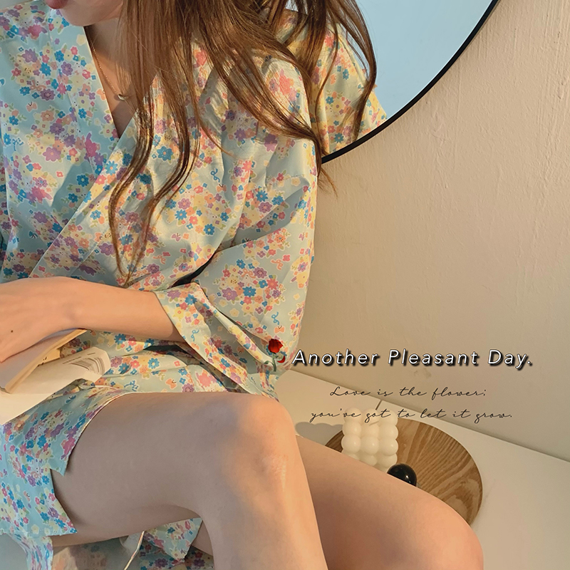 VIRRI CIAGA day of young girl ~ kimono cotton linen sleeping dress lady spring summer short sleeve shorts loose suit