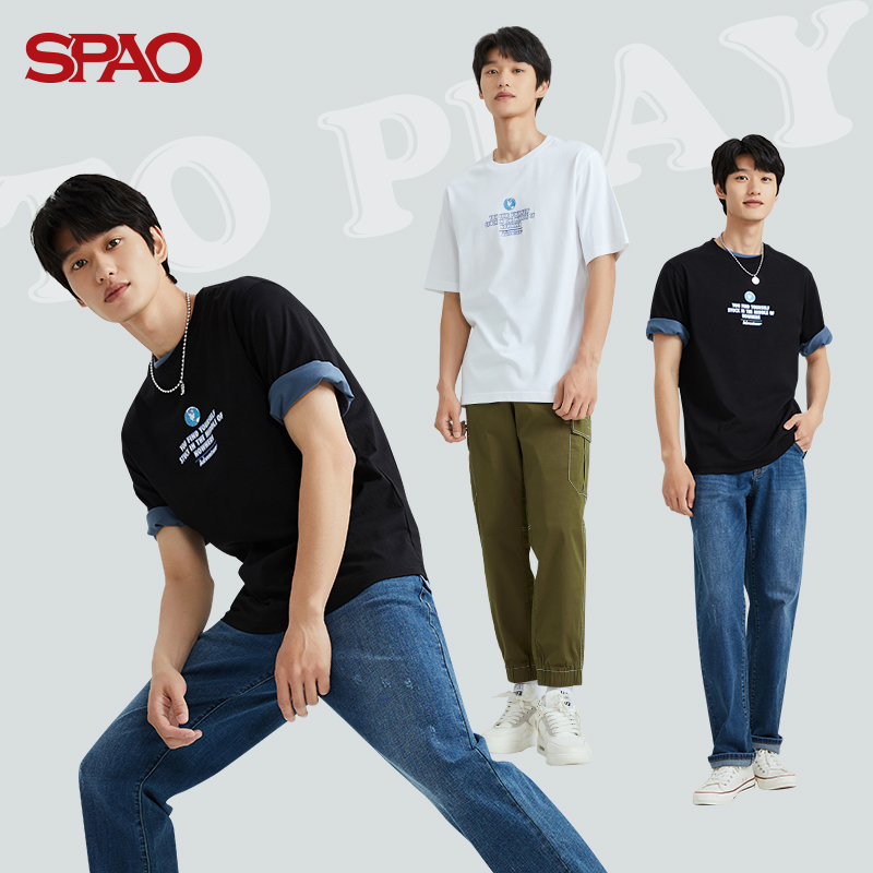 SPAO men's T-shirt 2021 autumn new item ASKIN cool printing casual round neck short-sleeved SPRPB25H25