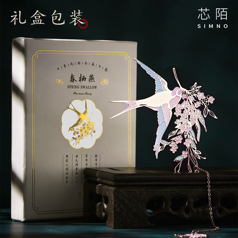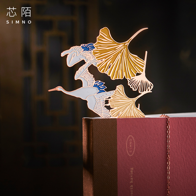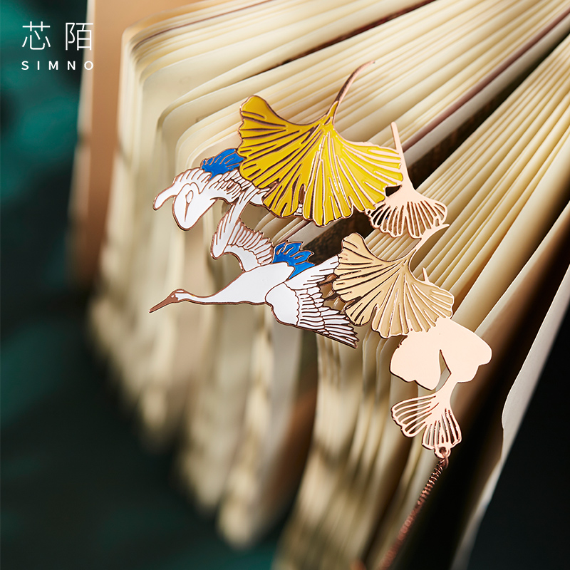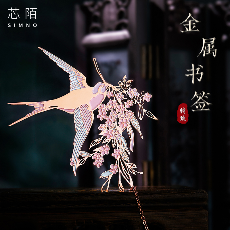 Classical China Wind Hollowed-out Brass Metal Pendant Bookmark Gift Box Cute Creative Ancient Wind Cherry Blossom Leaf Vein Students Use Vintage Fine Teacher Art Small Gift Wendy Graduation Gift Teacher Festival