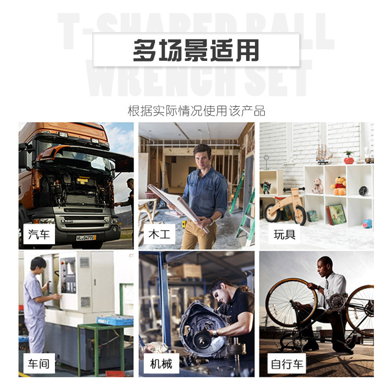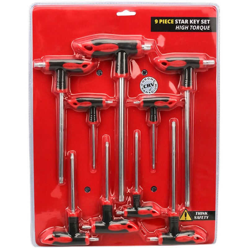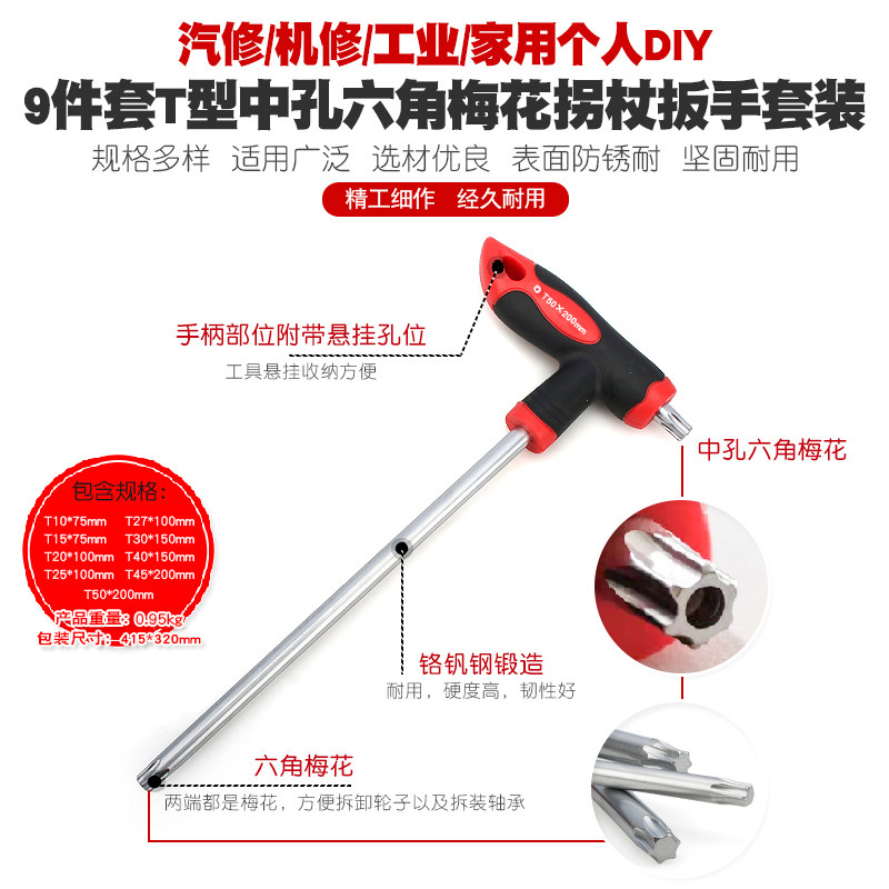 9 pieces of T-type middle-hole hexagonal plum-blossom-stick wrench suit