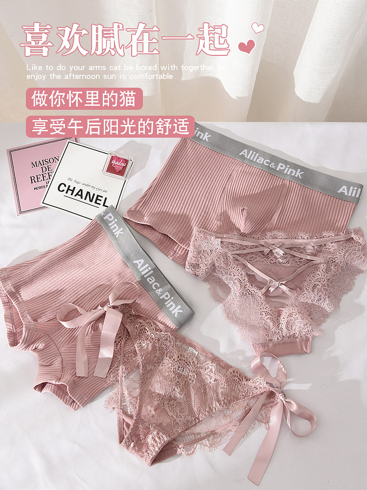 Couple panties Double sexy seduction suit Male and female friends gift cute lace briefs female low waist men