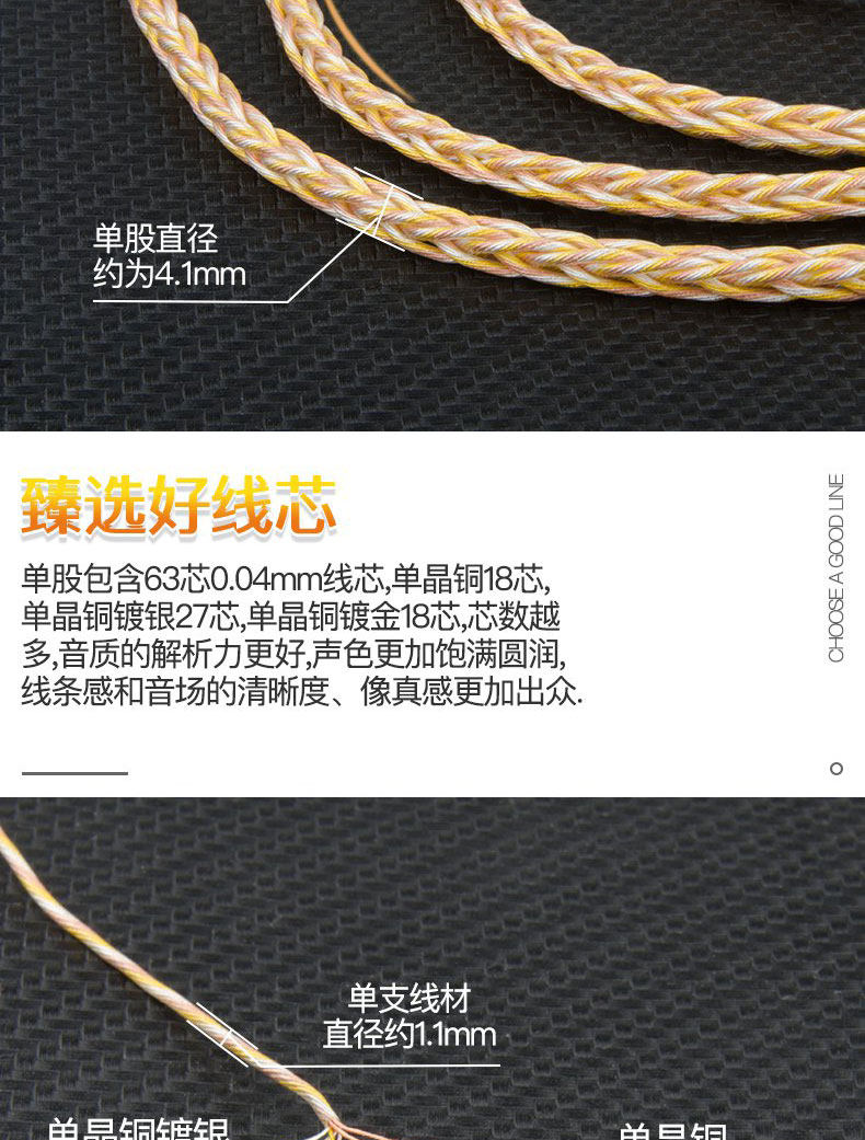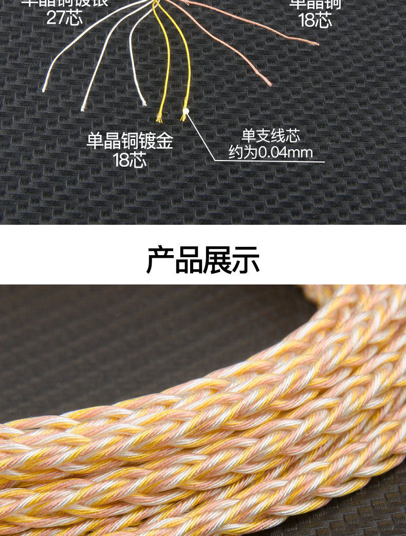 Gold and silver bronze mixed HIFI upgrade line headphones silver plated gold plated wire DIY handwoven audio loose wire