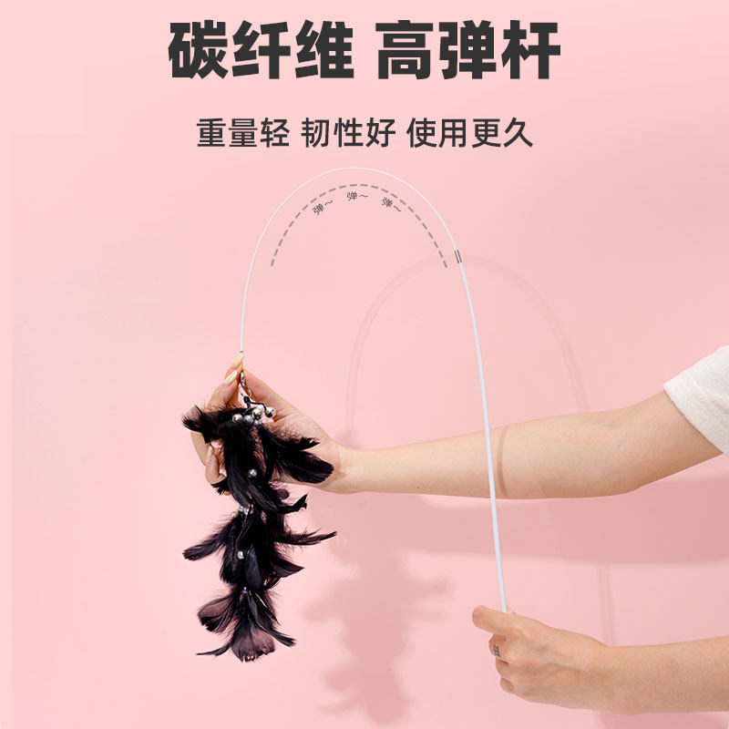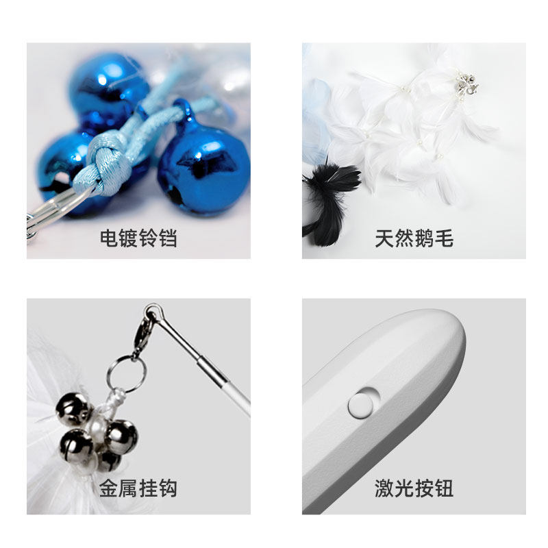 Laser light teasing cat-stick feather kitty toy with bell-resistant long pole to replace the young cat to relieve the smoldering god's self-hi