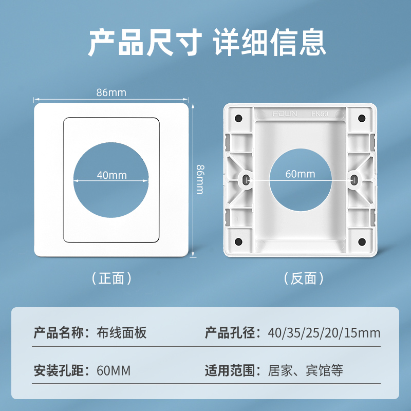 86 - type wiring panel white with rubber ring television wall blocking closing route to closing round hole blank plate