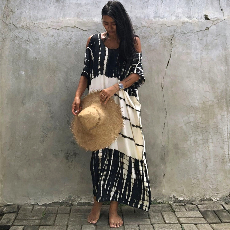 Grey Blue Fainting Dew Shoulder Long Robe Orange Hacked Shoulder Long Robe Pink Grey Stained Dew Shoulder Long Gown Black And White Fainting Dew Shoulder Long Robe