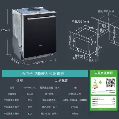 SIEMENS SIEMENS dishwasher embedded 12 sets of fully automatic drying sterilization SJ436B00QC
