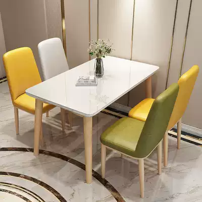 Nordic solid wood dining table and chair combination modern simple rectangular tempered glass small apartment dining room table