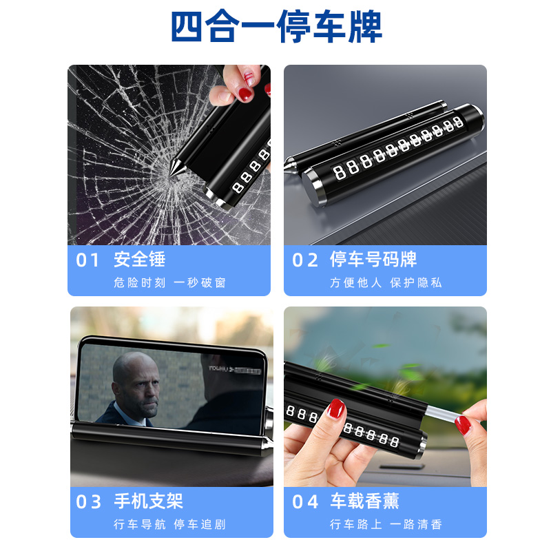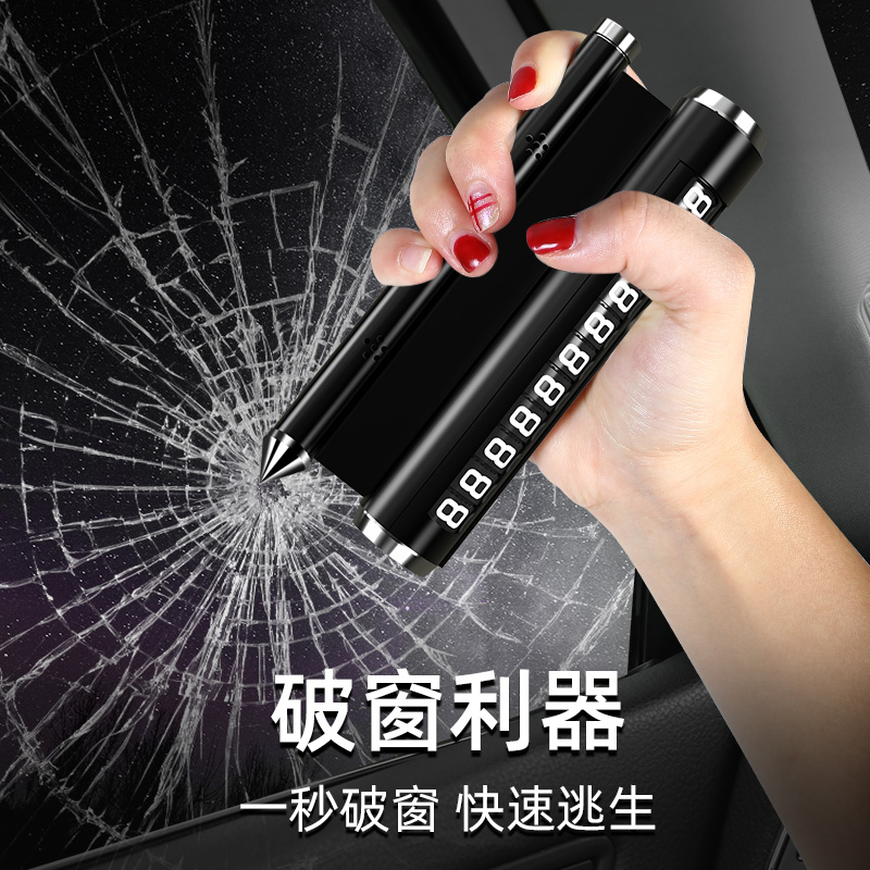 (Black) sunscreen alloy - parking plate + can be hidden + safety hammer + aromatherapy 1 strip