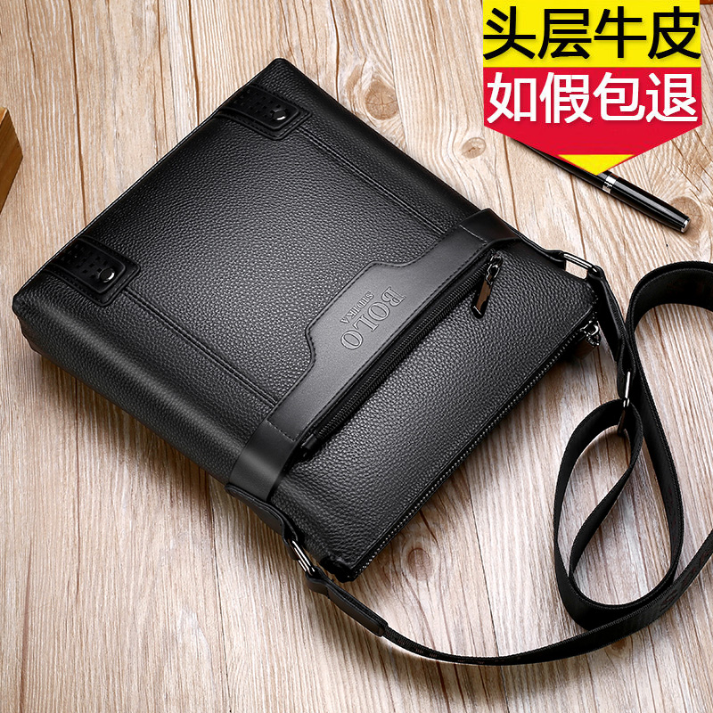 Genuine leather men's bag single shoulder Baotou layer Ox Leather Skew Satchel Vertical shoulder Shoulder Bag bag Men's large capacity Leisure inclined shoulder bag Male