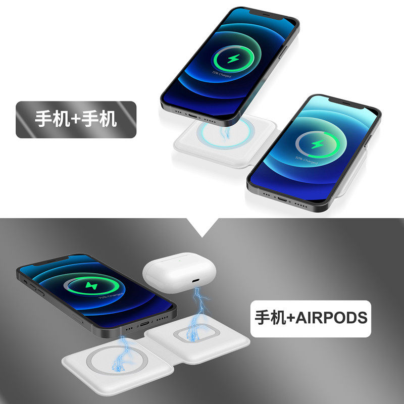 Two-in-one wireless charger magsafe double-item magnetic attraction dual-charging phone headphones for iphone12promax Samsung Apple 11mini Huawei P30 Xiaomi 1