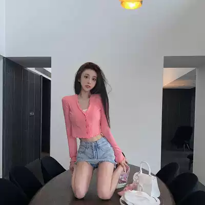 JoyingFeng Barbie girl pure pink long sleeve T-shirt female summer thin stretch sunscreen cardigan short