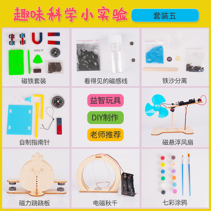 Primary School Sophomore Magnet Suit Kit Box Fun Science Iron Sand Separation Magnetic Trolley Experiment Teaching Aids Children Maglev Fan Magnetic Stilts Stilts With Toy Homemade Compass