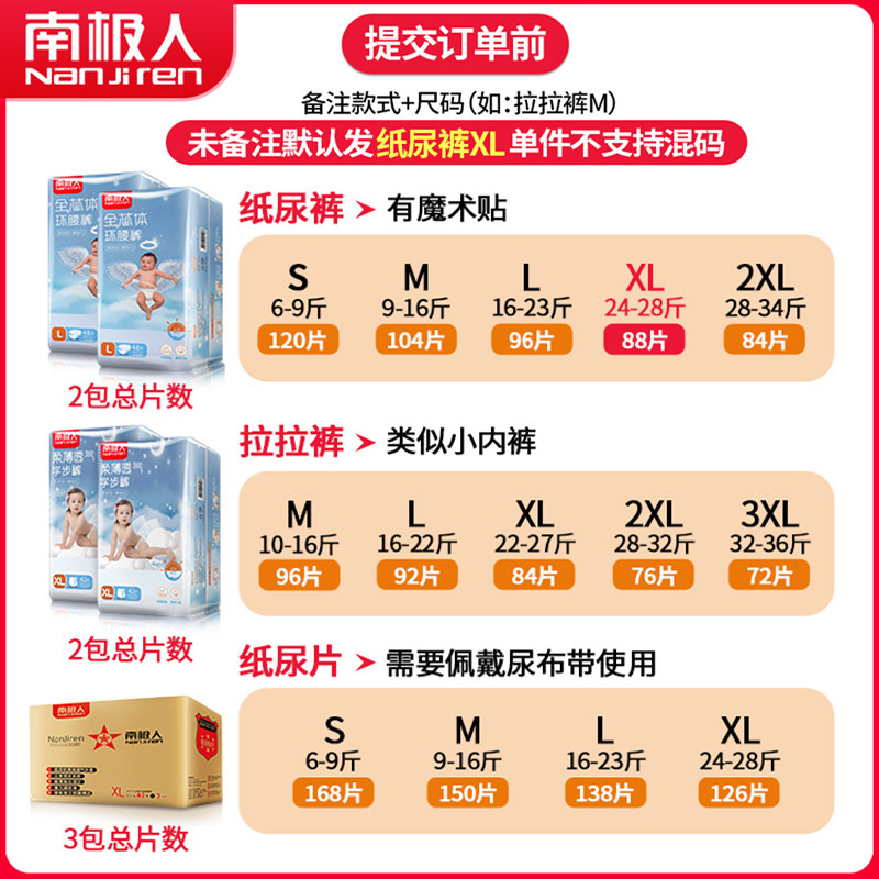 Antarctic diaper XL size 88 pieces for baby boys baby pants for women diaper ultra-thin breathable full core