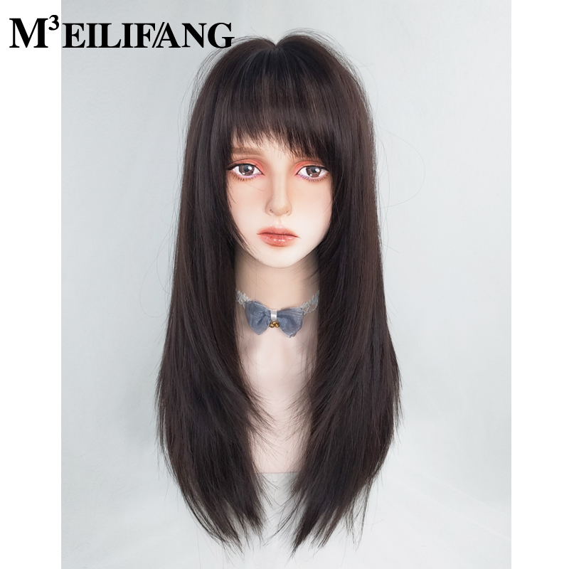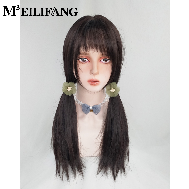 Beauty Cube Wig Woman Long Hair Lolita Day Ensemble Slanted Sea Jk Long Straight Hair Net Red Daily Nature Full Head Cover