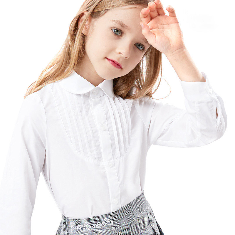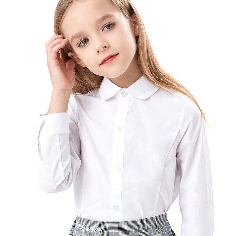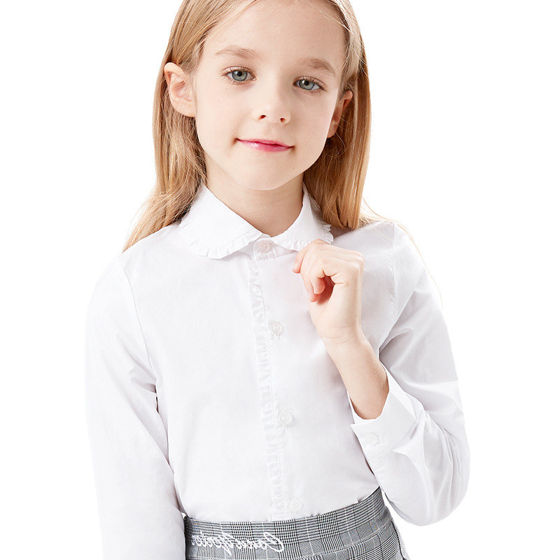 Girls' white shirt cotton doll collar long-sleeved shirt lace middle-aged children's spring and autumn school uniforms college style trendy