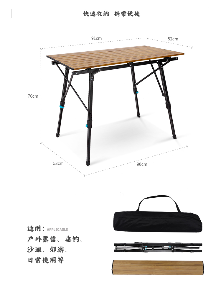 Bavay retractable folding table outdoor camping barbecue picnic table portable aluminum alloy casual table